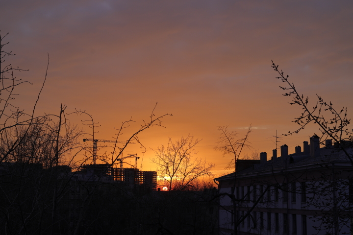 Из окна стал виден растущий квартал. По ночам стрелы кранов светятся и их полосы света складываются в гримасы.