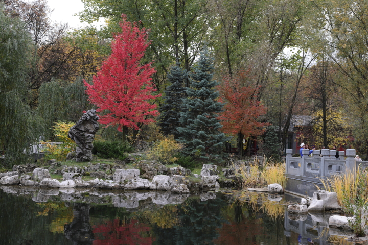 В спокойных водах пруда Линлун (пруд утончённости) отражается богатство красок осенних деревьев.