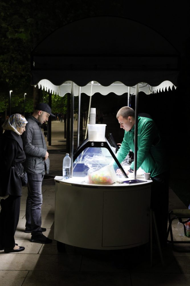 За мороженым уже не такие очереди, как днём.