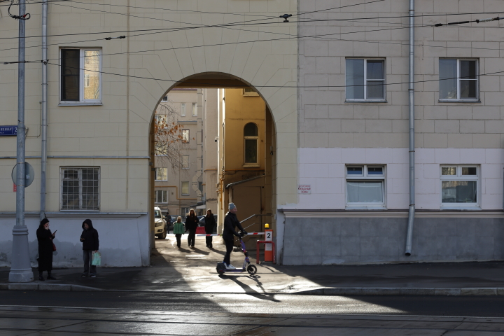 Особенно призрачно смотрится дом-небоскрёб Чкалов в пасмурную погоду, когда влажность и сумрачность добавляют материальности сталинкам.